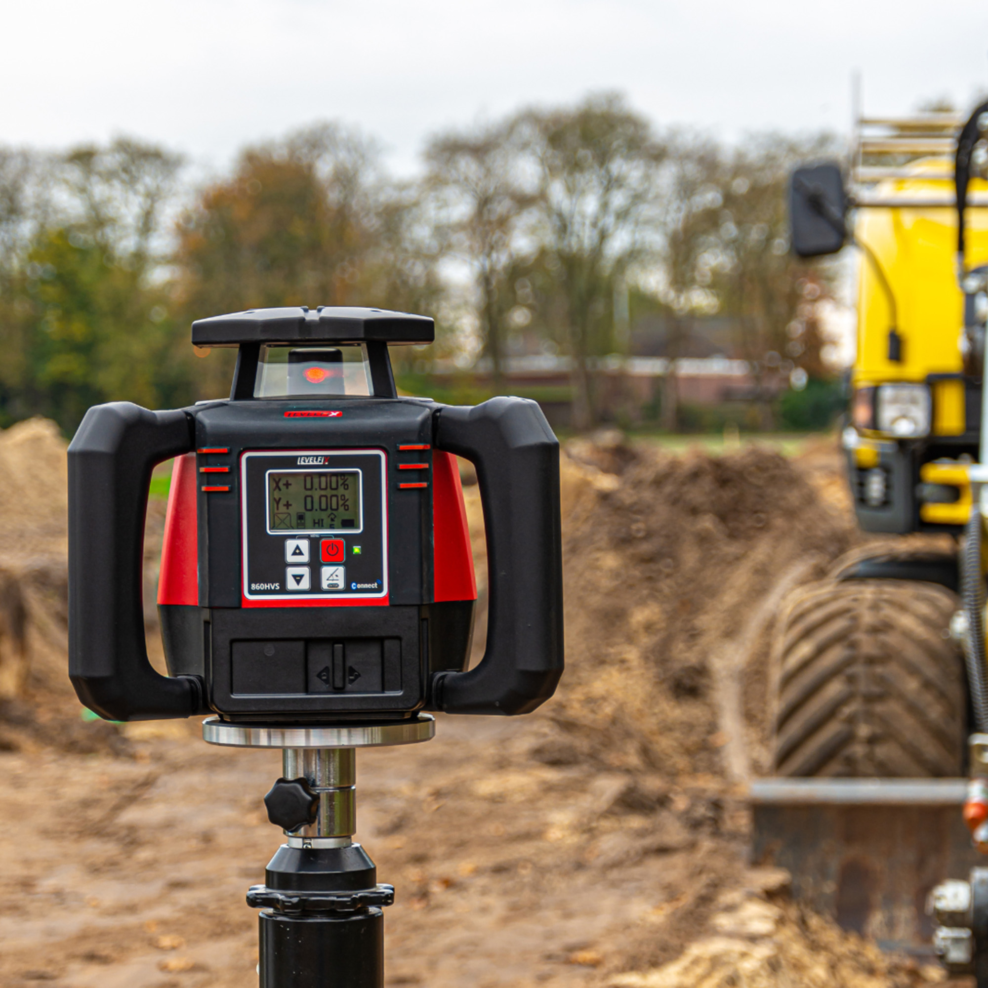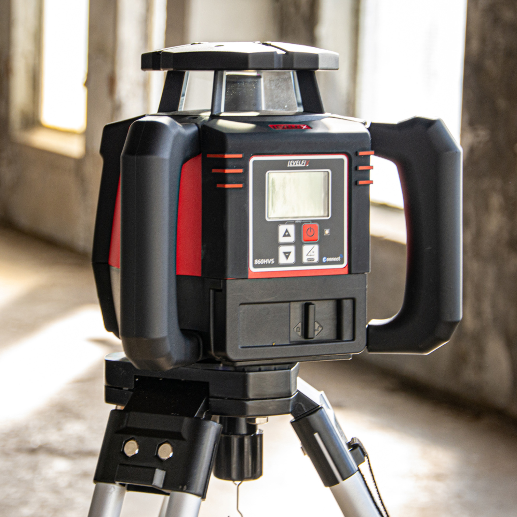 Het afschot kan op de 860HVS, welke voorzien is van een groot en helder display, digitaal ingesteld worden op beide assen. De SmartSlope technologie zorgt voor een gecontroleerde afschot met HI protectie en houdt temperatuurschommeling in de gaten. Uitlijnen wordt kinderspel, de unieke Auto-Alignment functie op zowel de x als de y-as zorgt ervoor dat de laser zelf het midden zoekt van de ontvanger. Plaats de ontvanger op hoogte en met slechts één druk op de knop zal de laser de ontvanger zelf opzoeken en is een afschot ingesteld. Het hoge instelbare toerental van 1200rpm maakt de laser ideaal voor gebruik met machineontvangers. Daarnaast is de 860HVS voorzien van een vensteruitschakeling (het “blinderen” van bepaalde zijdes). Deze functie zorgt ervoor dat u de laser ook kunt gebruiken waar weerkaatsing van de laserstraal op kan treden. U schakelt de zijde eenvoudig uit welke een weerspiegeling veroorzaakt bij raampartijen of reflecterende materialen, of waar de laserstraal niet detecteerbaar hoort te zijn.