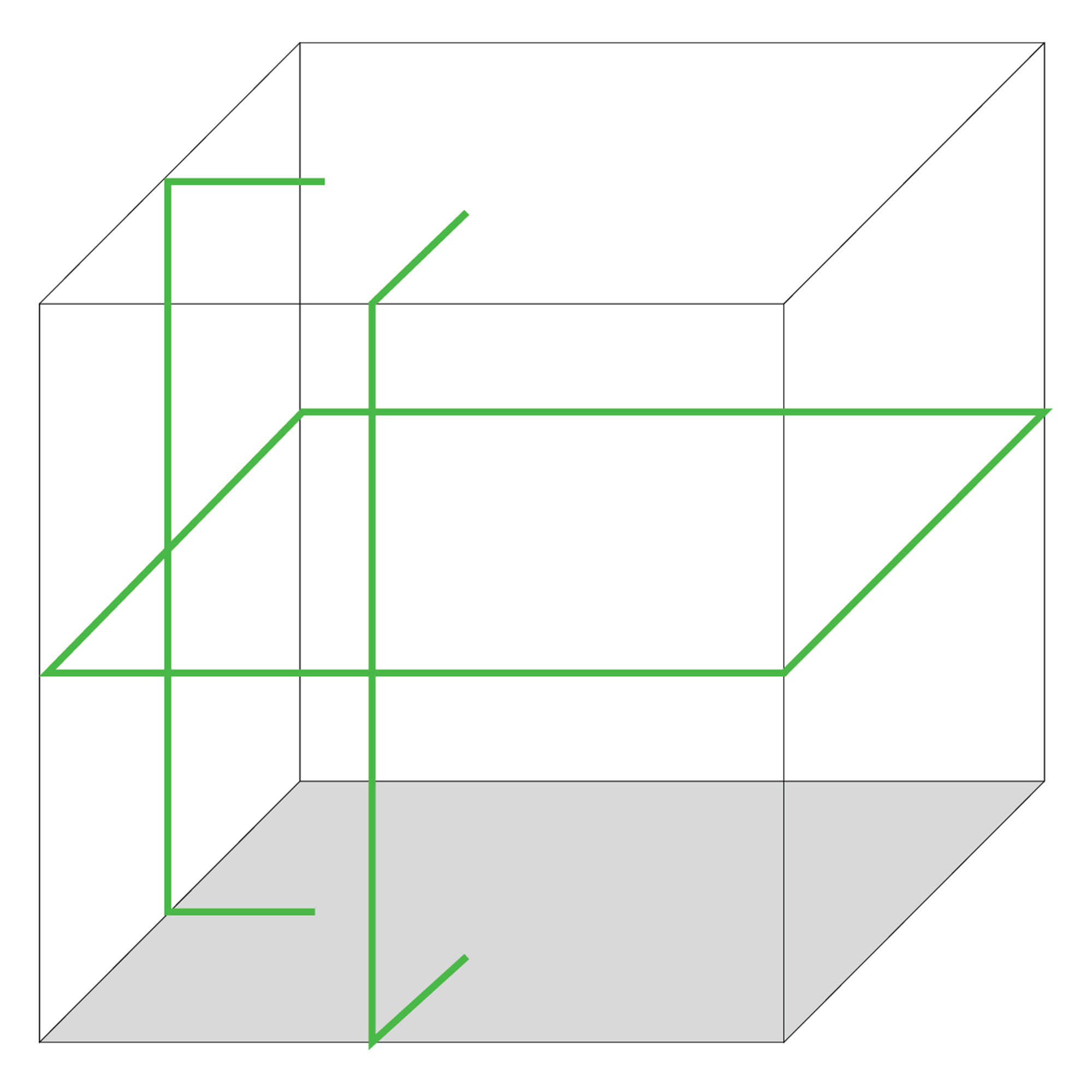 Multilijnlaser met groene 360º horizontale lijn en twee verticale lijnen.